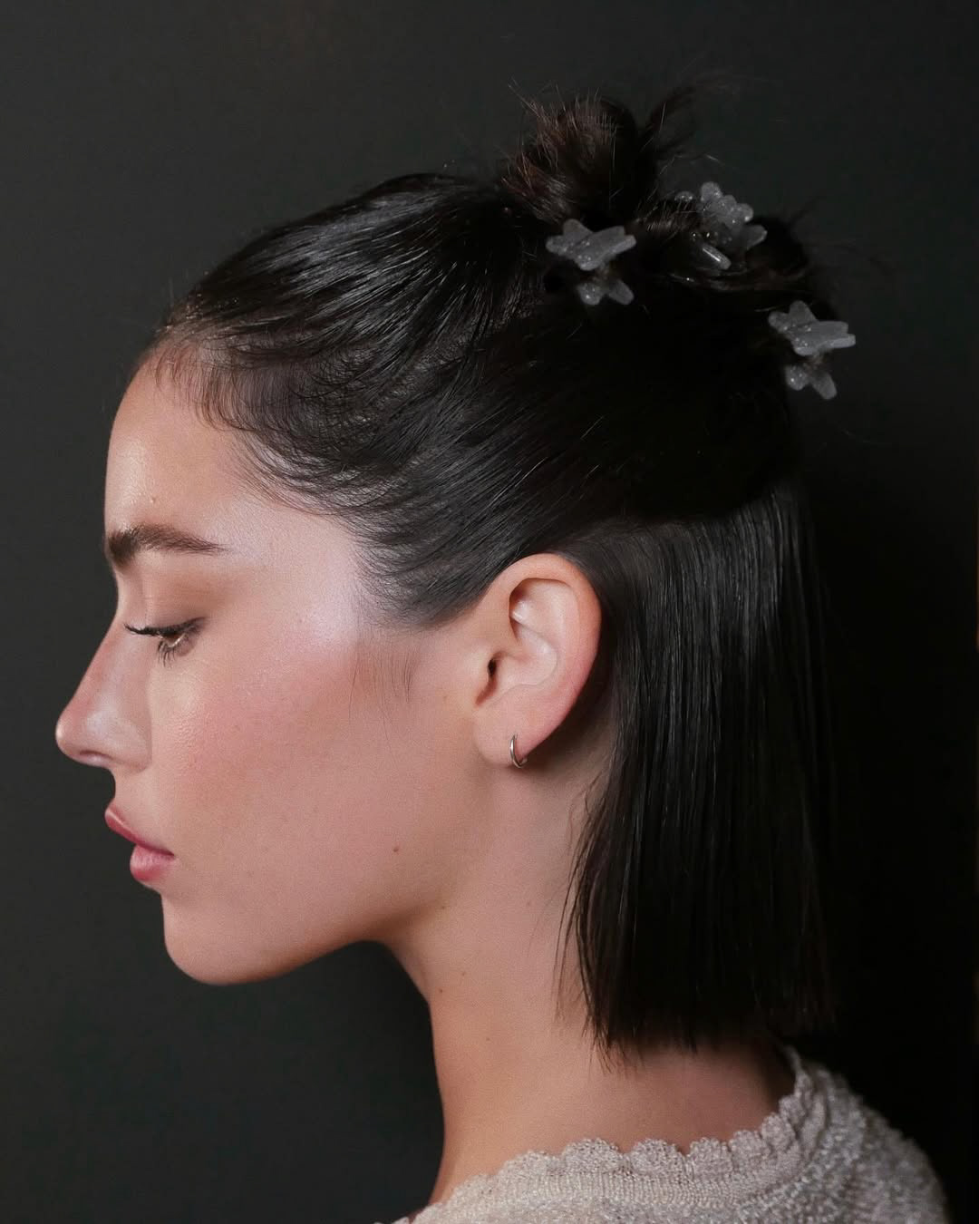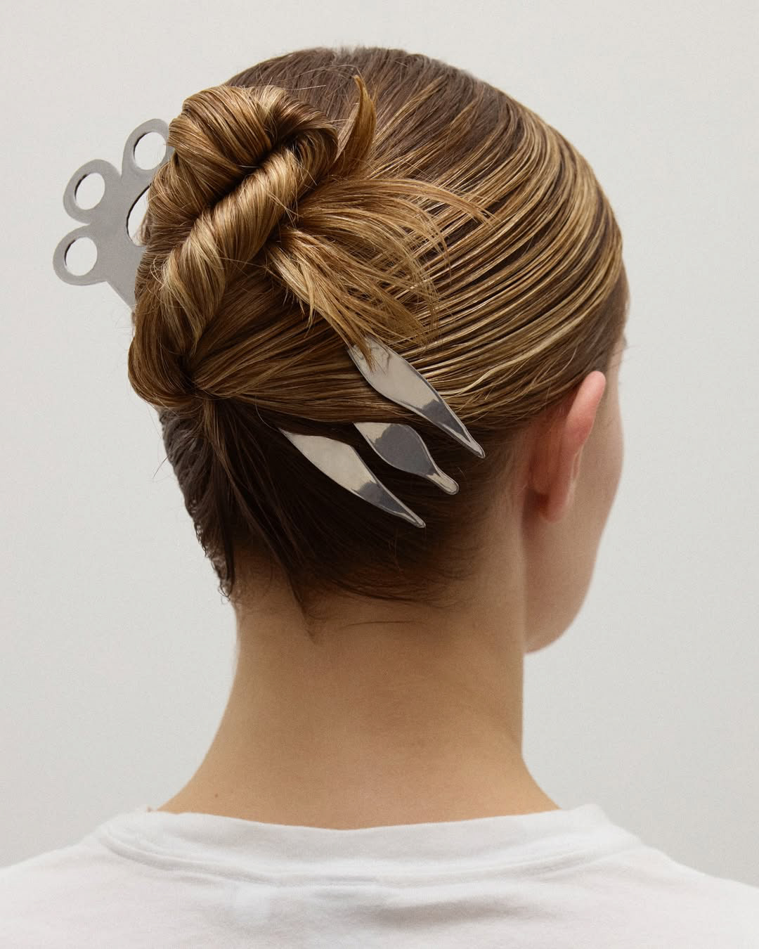 빗으로도 사용 가능한 헤어핀은 여름철 깔끔한 슬릭번과 함께 연출하면 여름철 간편하면서도 세련된 스타일을 완성할 수 있다.