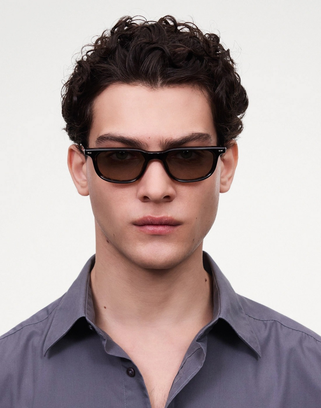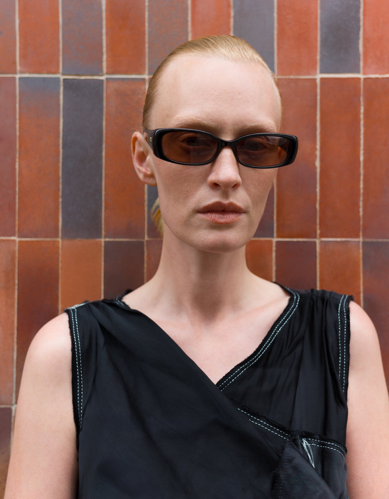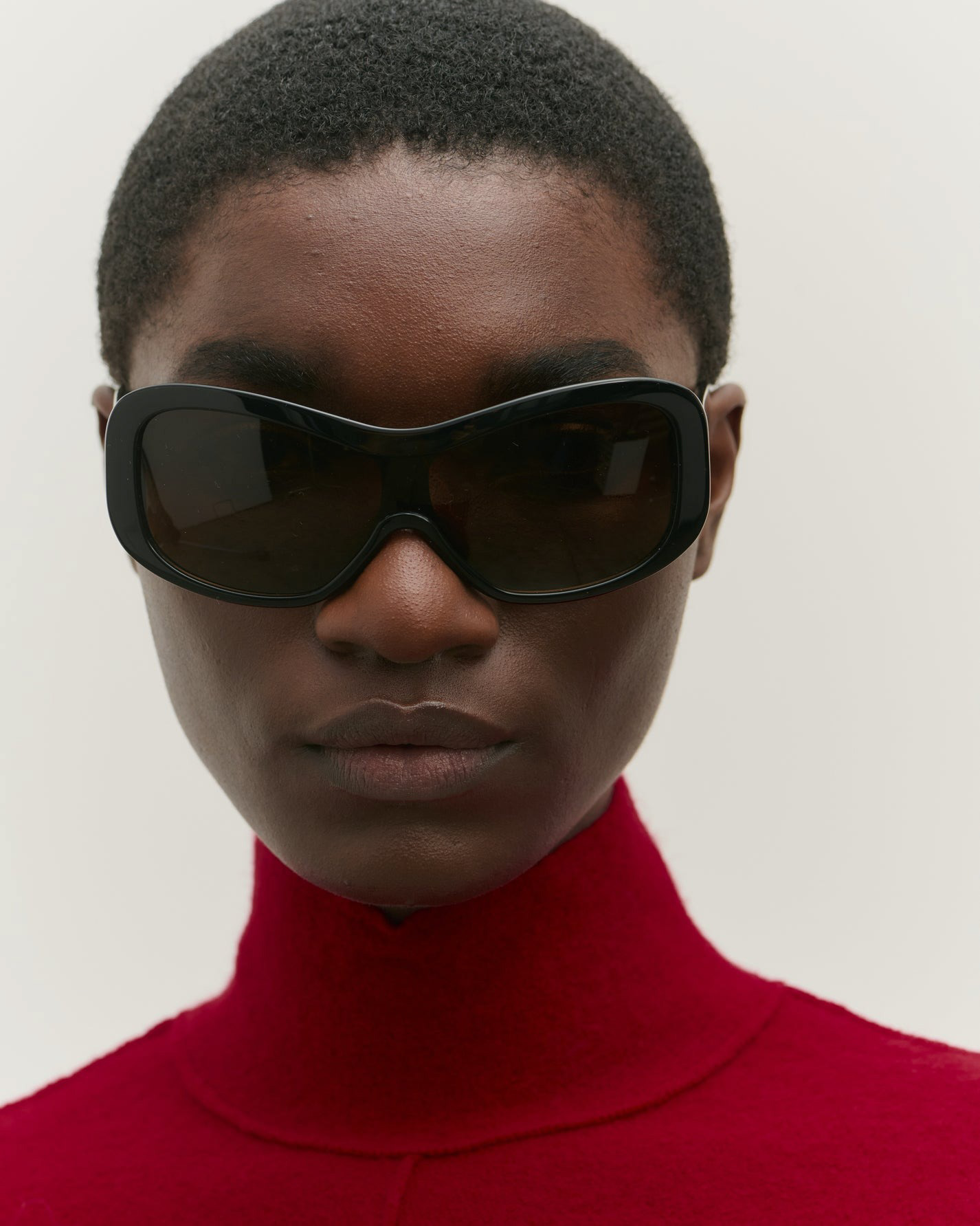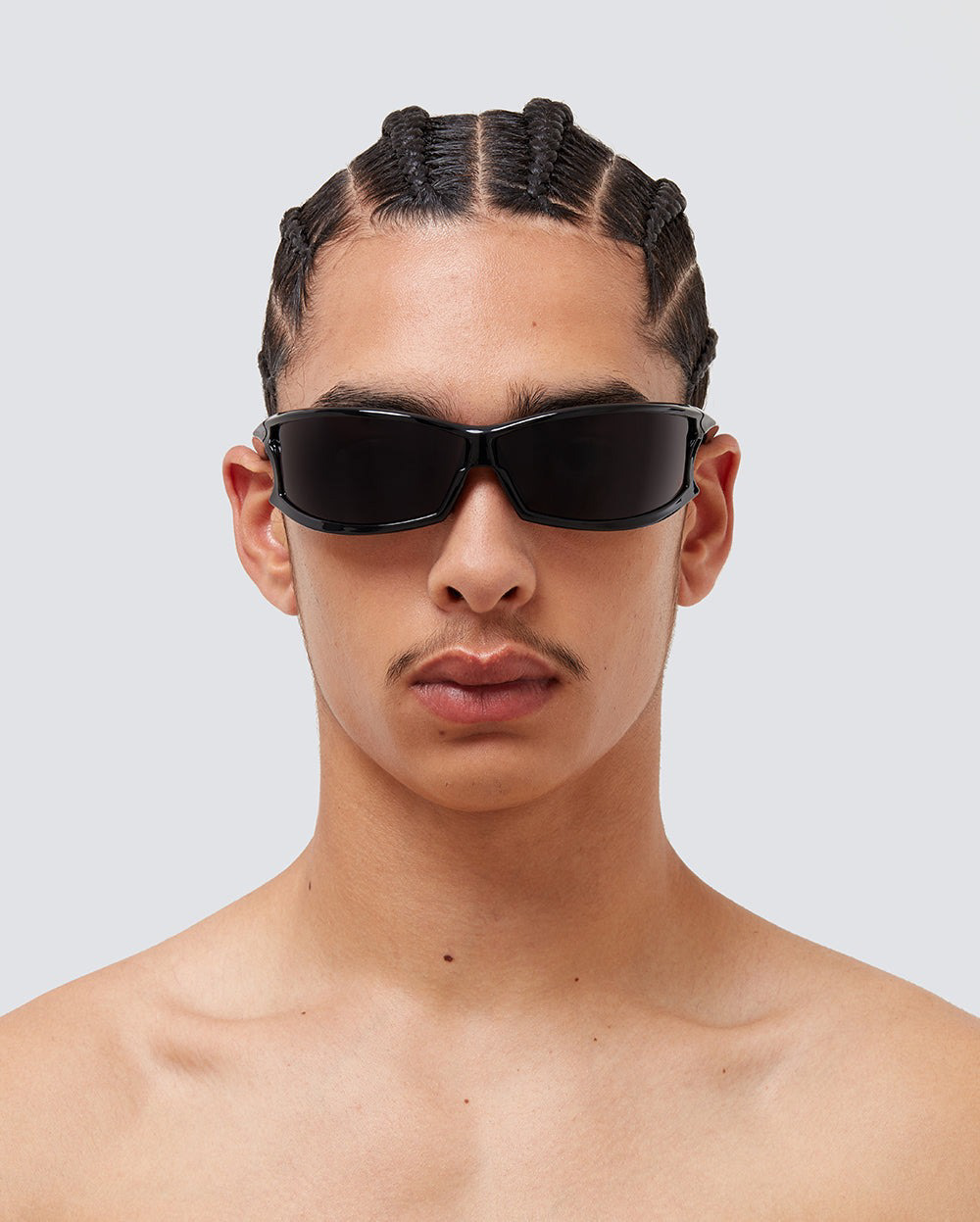이들을 대표하는 모델 ATLAS는 볼드한 라인이 돋보이는 오버사이즈 선글라스로, 미니멀한 룩에도 확실한 존재감을 더한다.